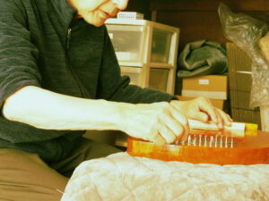 寒がりの私は、朝からストーブを点け、情熱リラの弦張り作業を行い、調律もしましたが、音程を安定させるには、さらに弾き込むことも必要です。